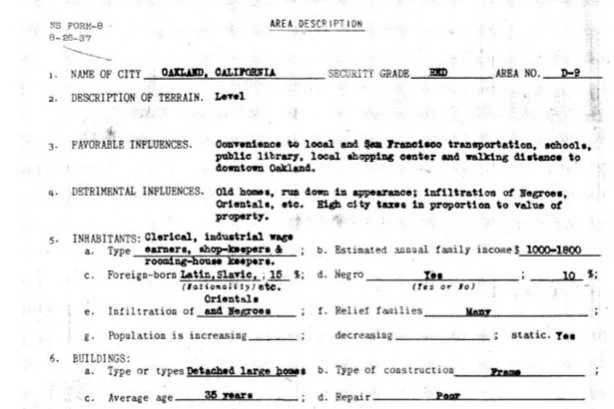 In the 1930s, the federal government carved The East Bay (Oakland, Berkeley and surrounding towns) into a series of puzzle pieces--imaginary lines were drawn down streets, dividing neighborhoods, families, and entire populations of Oakland residents. This practice, known as “redlining,” discouraged investments in certain neighborhoods, making it exceedingly difficult for much of The East Bay’s low-income and people of color to receive basic necessities. The boundaries of these redlined districts show a striking social chasm -- in which one’s ability to receive healthcare, schooling, or even access to basic necessities could be determined by the street you lived on. Nearly a century later, the exact same puzzle pieces spell out a story of a new East Bay: one in which renewed demand for city center properties has led to the continued exclusion of victims of the redlining era. East Bay: Redline Redefined will explore the balance between the past and present -- presented as a series of audio narratives, film, poetry, and more composed as neighborhood-specific walks, audience members will traverse history though the words, music, and field recordings of local residents, tying the legacy of redlining to the challenges faced by modern day East Bay residents.